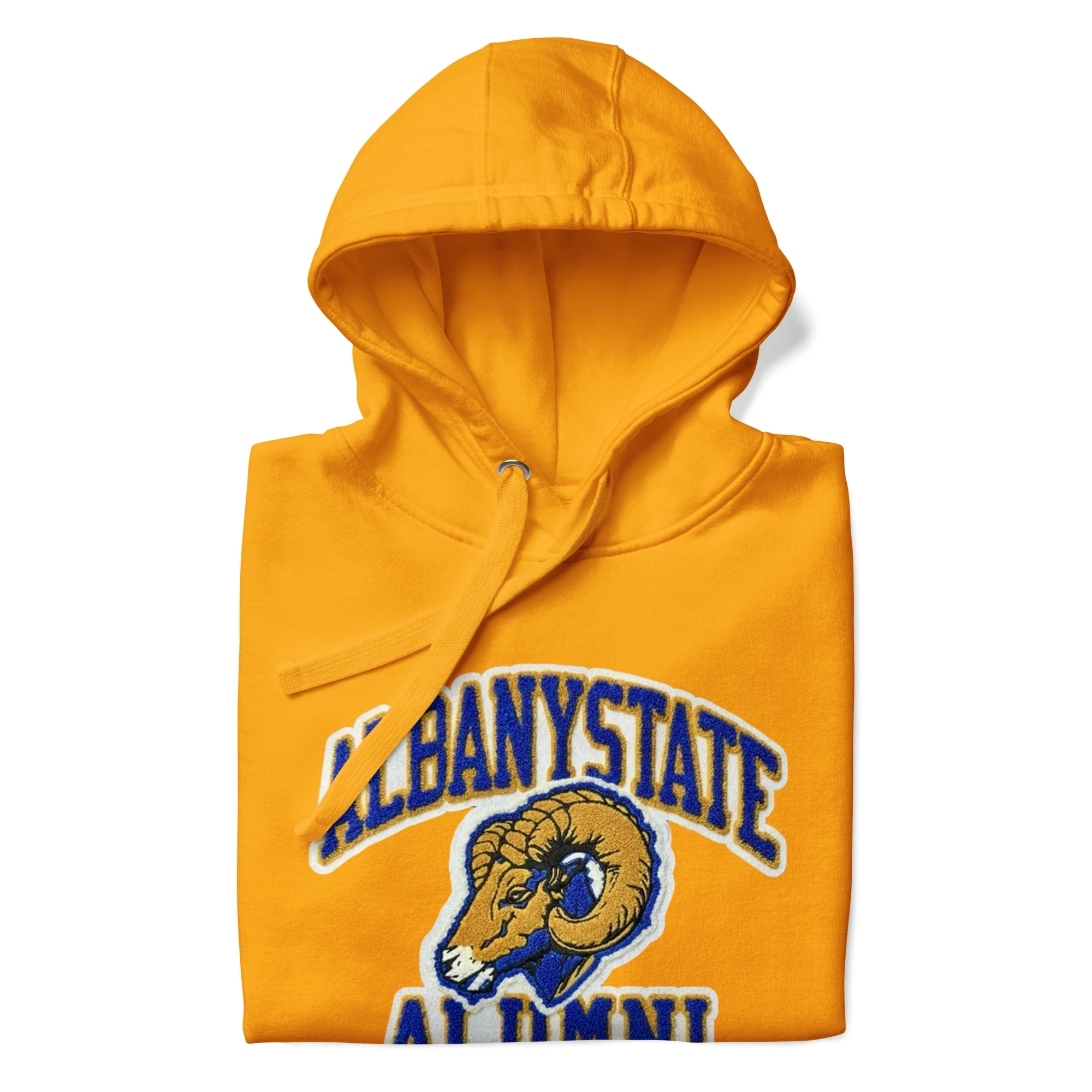 Premium Gold Fleece Hoodie with Royal/Gold/White Chenille Embroidered Logo.