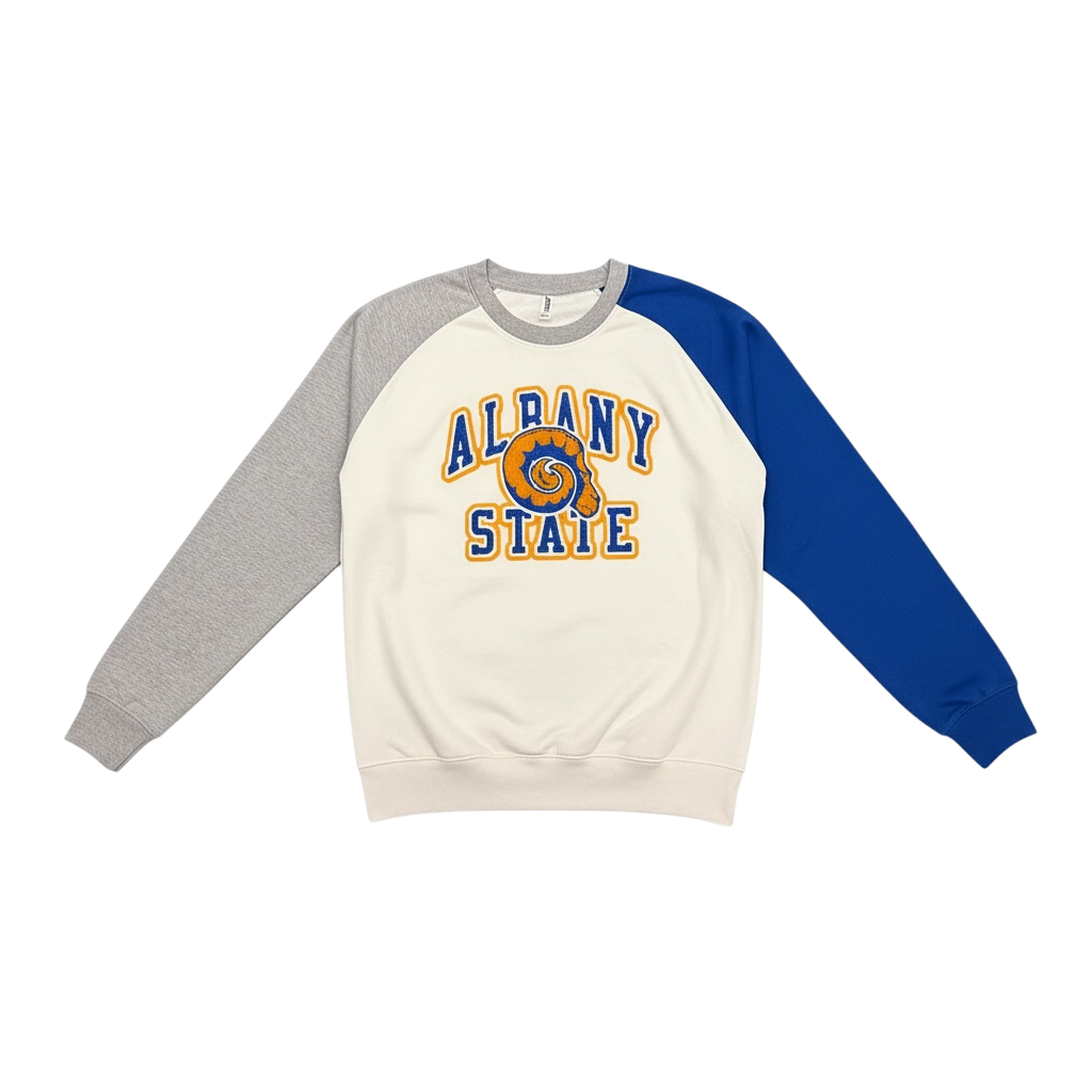 Premium Fleece Crewneck with Gold/Royal/White Chenille Embroidery.