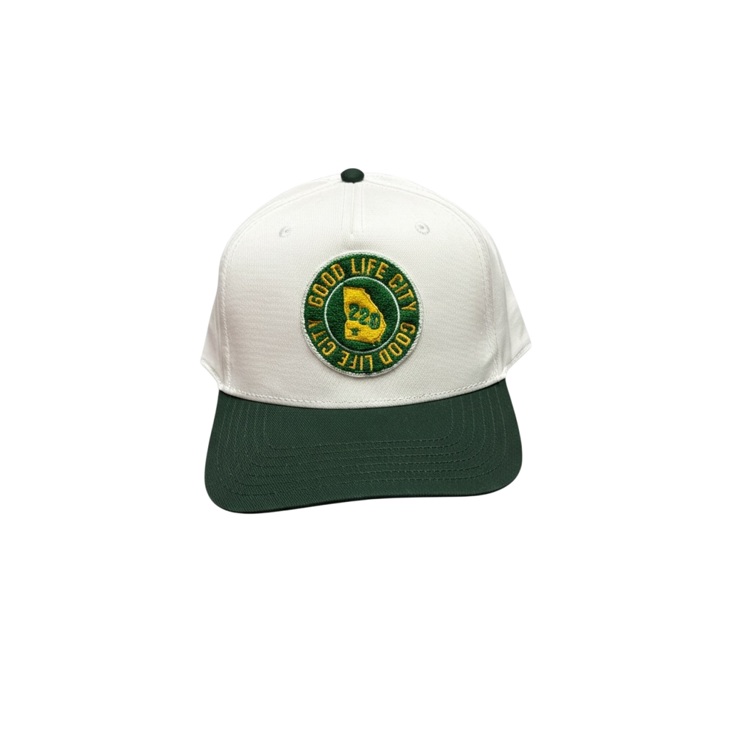 Premium Trucker Hat with Green/Gold//White Embroidered Good Life 229 Logo